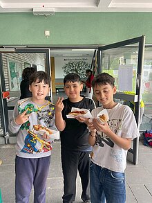Am 6.6.25 fand unser Trödelmarkt statt. Hier gab es die Möglichkeit zu verkaufen aber auch neue Schätze zu erwerben. Die Lehrerinnen haben uns geschminkt und “tätowiert”, die OGS hat mit uns gebastelt und gespielt. Außerdem hatten wir viel Zeit und Platz unsere neuen Fahrzeuge auszuprobieren. Es gab ein leckeres Buffet, das unsere Eltern zusammengestellt hatten. Außerdem gab es auch noch HOT-DOGS, das war richtig cool.